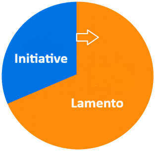 Weniger formelhaft formuliert: Die Zeit, die wir auf Bewertungen verwenden, steht uns nicht mehr zur Entwicklung von Initiative zur Verfügung. Mit Initiative meine ich hier übrigens nicht nur konkrete Handlungen mit sofortiger Wirkung, sondern auch Übungen. Mit beiden Formen der Initiative steigern wir unseren Einfluss. Und wir erhöhen unser Potenzial zur Initiative, indem wir unser Lamento reduzieren.